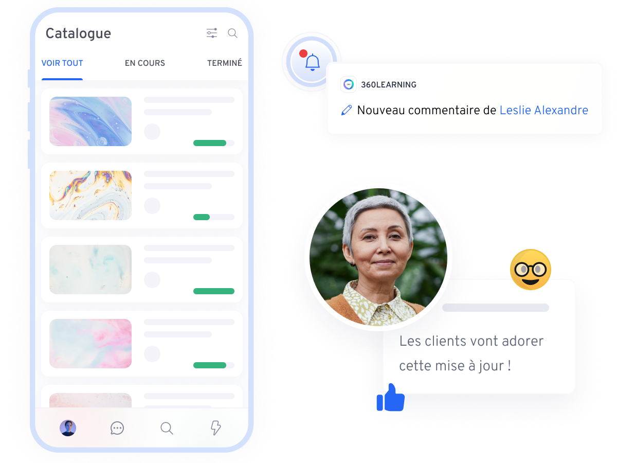 L’apprentissage, même hors-ligne : engagez vos apprenants avec une application mobile personnalisée, collaborative et gamifiée. Les statistiques et reporting sont toujours enregistrés. Un onboarding personnalisé pour toutes vos équipes internes comme externes.