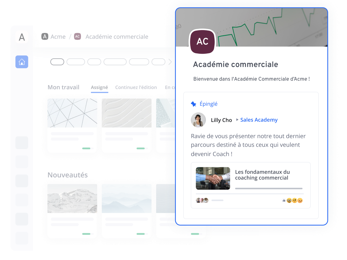 Incitez au partage de connaissances entre les équipes terrain, vos points de vente ou sites logistiques : favorisez l’apprentissage social et interactif grâce à nos fonctionnalités collaboratives.