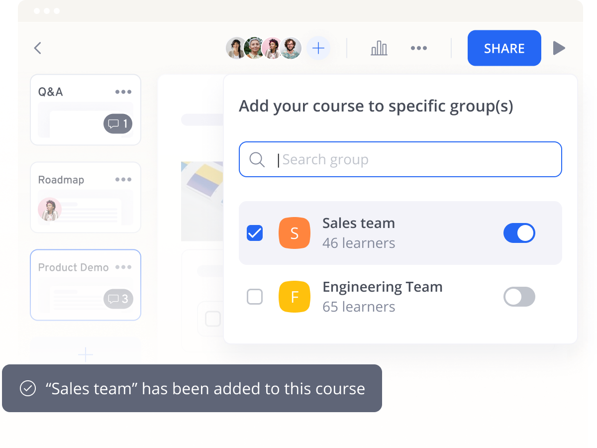 Give your courses the expert seal of approval. Add the right subject matter experts as co-authors to contribute and make edits to course content with the co-authoring tool—complete with collaborative commenting and validation workflows to ensure courses are always up to your standards.